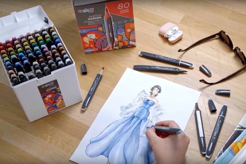 Toma un marcador, un lápiz y un cuaderno de bocetos
